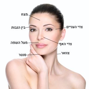 בתמונה ניתן לראות מה האזורים המתאימים לטיפולי בוטוקס בפנים וצוואר :